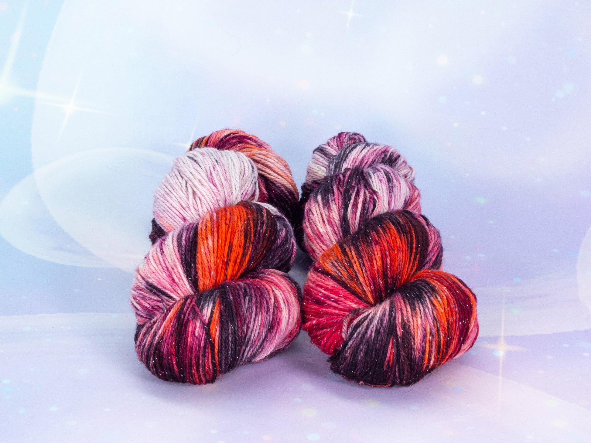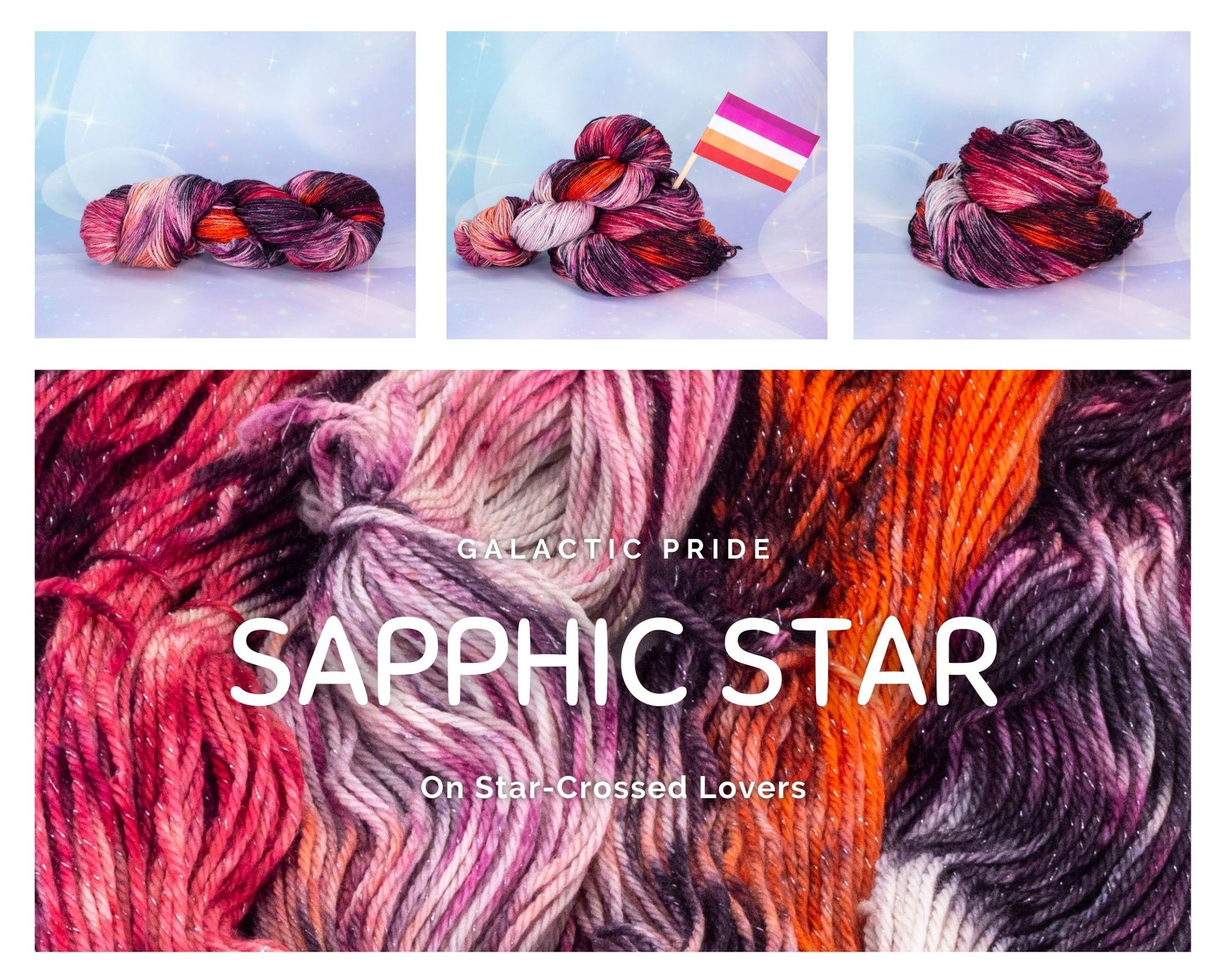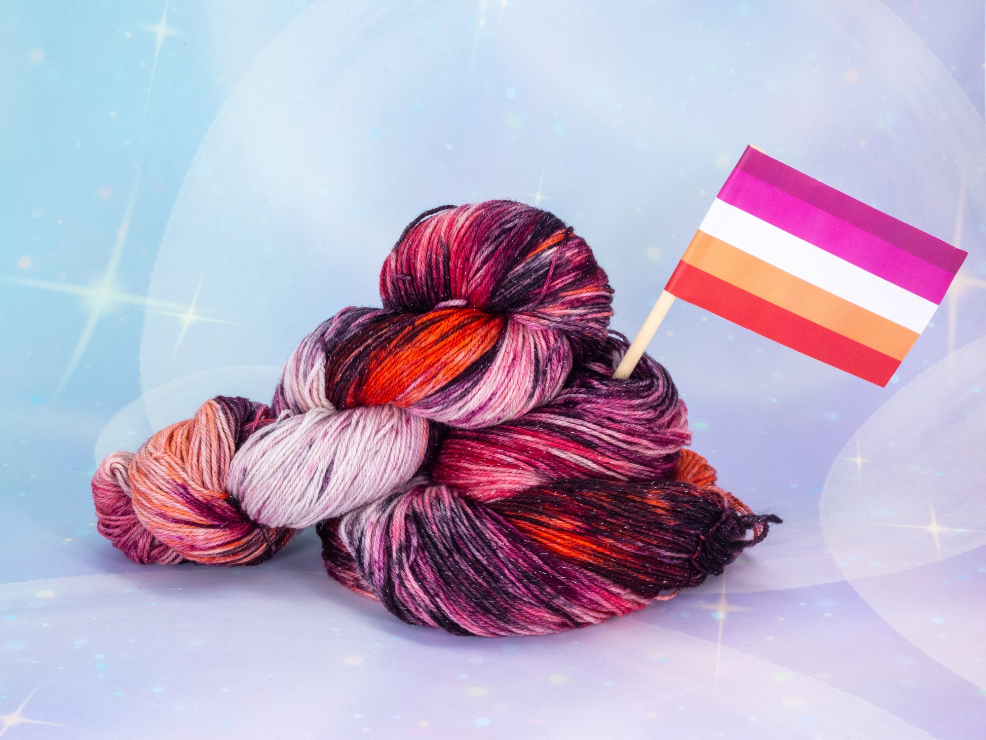 Celebrate Queerness in and outside of fandom and this world with this yarn dyed in the Lesbian Pride Flag colors!